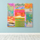 Cores vibrantes e brilhantes são iluminadas dentro desta obra mestiça de arte com seus veleiros, palmeiras, e padrões de ondas oceânicas este fazer é uma adição agradável a qualquer parede em sua casa.