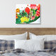 Arranjo com um pepino como vaso de flores com Rosas, Peonies, Anthurium, Duro Ruscus. A impressão de tela estendida é trabalho de arte impressa em material de canvas que é esticado através de bares de madeira. Estas impressões estão prontas para armar ou pendurar na sua parede.