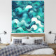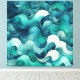 Verduras estéticas e abstrato azuis fazem impressão de arte na parede numa grande canvas quadrada.