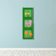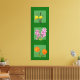 Imagens de dois daffodils laranja e amarelo, dois lilases cor-de-lavanda e rosa, e dois calendários cor de laranja (de cima a de baixo) se posicionam sobre um fundo verde médio com um centro difuso para formar uma moldura, fazendo com que as flores pareçam tridimensionais.