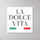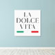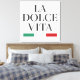 Celebre a essência da Itália e a alegria de viver bem com esta "La Dolce Vita" Stretch Canvas Print. Apresentando uma tipografia negra ousada e sotaques clássicos verdes e vermelhos inspirados pela bandeira italiana, esta peça de arte decorativa adiciona um toque de elegância e positividade a qualquer espaço. Perfeito para casa, escritório, ou como presente pensativo para amantes da cultura italiana e para aqueles inspirados pela doce vida.