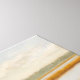 Uma pintura a óleo ao estilo impressionista que captura realisticamente um porto e praia pitorescos em Stony Brook, Long Island, Nova Iorque. A folhagem do outono brilha em tons de laranja e amarelo ocre. As nuvens nebulosas flutuam acima da água tranquila que reflete a linha da árvore. Uma paisagem tradicional tranquila e idílica. Pintura de Letizia Morley.