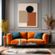Uma composição minimalista que explora a harmonia entre formas geométricas e tons de terra. A sutil interseção do círculo negro com retângulos translúcidos sugere equilíbrio, contraste e introspecção dentro de um espaço visual silencioso.