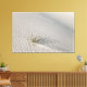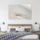 A imagem mostra um pedaço de folhas verdes de uma planta de iucca crescendo em areia branca. A areia tem uma textura ondulada, criando um padrão de luz e sombra. A grama lança uma longa sombra sobre a areia, indicando um ângulo baixo de luz solar. O tom geral da imagem é sereno e minimalista. O fundo é inteiramente composto pelas dunas brancas de areia. A cena evoca um senso de tranquilidade e natural