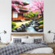 Impressão Em Tela Jardim Japonês Tradicional com Flores De Cereja