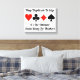 Jogadores de ponte duplicados desfrutarão desse duplo conselho de ponte / dizendo canvas com os quatro traços de cartas junto com o seguinte comentário de atitude: "Jogar Ponte Duplicada - É o Último Jogo Social para Pensadores". Não precisa ser professor de ponte para curtir! Canvas memorável para qualquer clube de ponte duplicado.