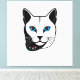 Impressão Em Tela Katzen Kopf in Schwarz-Weiß Blaue Augen + Text
