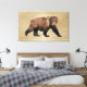 Uma pintura digital de um Urso Kodiak em um pergaminho neutro, ou papel antigo, fundo. O Urso Kodiak (Ursus arctos middendorffi), uma subespécie do urso pardo, ou grizzly, são os maiores ursos do mundo. Um macho adulto pode ter mais de 10 pés de altura quando ereto sobre as pernas traseiras e pesar mais de 1500 libras - uma visão verdadeiramente segura. Um urso no Bismarck, o zoo de Dakota do Norte, estimava-se ter pesado até 2400 libras. Os ursos vivem nas ilhas do Arquipélago Kodiak do Alasca. Atualmente, há cerca de 3500 ursos Kodiak e o seu número está a aumentar devido ao estado geralmente excelente do seu habitat, incluindo peixes suficientes para comer. Eles são chamados de takuka-aq, em Alutiiq, a língua das pessoas nativas daquela área. Acredita-se que os ursos tenham sido isolados lá desde o final da última Era do Gelo há mais de 12.000 anos. Embora sejam o maior carnívoro terrestre, a sua dieta inclui grandes quantidades de erva, outras plantas e bagas. Atualmente, há cerca de 3500 ursos Kodiak e o seu número está a aumentar devido ao estado geralmente excelente do seu habitat, incluindo peixe suficiente para comer. Devido à abundância de recursos comidas, os ursos Kodiak têm intervalos mais pequenos do que quaisquer outros ursos pardos e não têm necessidade de defender territórios. As pessoas Alutiiq caçavam ursos para comidas, roupas e ferramentas. Setas, lanças e excelente de coragem eram necessárias para caçar equipamento. As cabeças de ursos costumavam ser deixadas no campo como sinal de respeito ao espírito dos ursos.