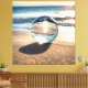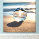 Bola de lente numa praia arenosa com reflexo de paisagem