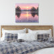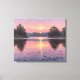 A canvas representation in the impressionist pictorial style of a sunset view from a deep lake.