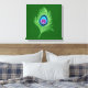 Canvas em um desenho vetorial de uma pena de pavão, melhorada e renderizada em um efeito de cráton de conte mole - pena de verde limão clara, com azul de turquesa, azul de cobalto e olho de orquídea / violeta, em um fundo verde esmeralda escuro