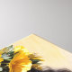 A tela de desenho apresenta trabalho de arte digital de uma linda negra de pele escura com coroa floral amarela em seu longo cabelo ondulado, vestindo um elegante vestido amarelo com detalhes florais. Retrato rico em melanina, de Dee Claire. Vestes de verão.