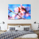 Lindas flores sakura, flores japonesas de cereja. Vista aproximada. Fundo rosa e azul escuro. A alegria da primavera. Uma pintura digital estilizada muito grande a partir de uma fotografia. Arte de canvas enrolada ou esticada para decorar seu lugar. Impressões florais e presentes para qualquer um. Você pode transferir esse design para uma variedade de outros produtos de sua escolha, grandes ou pequenos, incluindo impressões de baixo preço e presentes baratos. Utilize o botão "Editar Design" para ajustar a imagem à forma do produto específico. Ele o transferirá para a Ferramenta Designer. Use a opção "Ajustado/Preenchimento" (menu do lado direito da Ferramenta Designer). Você pode dimensionar, girar, sacudir a imagem no modelo do produto e até adicionar algum texto a ela. Seja criativo, divirta-se, comprar um, e seja feliz!