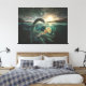 Bring the deep, moody atmosphere of the Scottish Highlands into your home with this breathtaking Loch Ness Monster canvas print. Reimagining the famous cryptid not as a beast, but as a gentle guardian, this artwork is the perfect statement piece for a dark academia library, study, or whimsigoth living room.