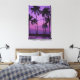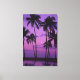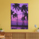 Palmeiras com lua num céu rosa brilhante e roxo, refletindo sobre água estática. | Fotos Design/Ron Dahlquist | ID do ativo: 124811283