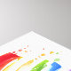 Este trabalho de arte apresenta um arco-íris colorido num estilo de salpicos de aquarela.