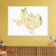 Impressão Em Tela Mapa de Ilustração de Aquarela do Texas Cactus