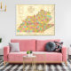 Impressão Em Tela Mapa de Kentucky e Tennessee