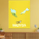Viagem mapa da Malásia em estilo detalhado com fundo amarelo.