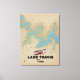 Lago Travis Texas belo e velho poster de viagens de mapa de safra.