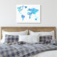Impressão Em Tela Mapa do Mundo Azul da Aquarela