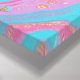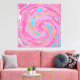 Um padrão de mármore abstrato mesmerizante com vibrantes espirais cor-de-rosa, roxo e turquesa acentuado com uma luxuosa veia de ouro. Esse sonhador, design fluido capta a essência de doces líquidos ou nebulosas cósmicas, com formas de fluxo orgânico que criam senso de movimento e profundidade.