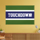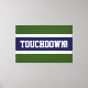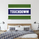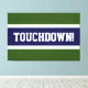 Este design de futebol desportivo apresenta texto ousado TOUCHDOWN dentro uma vasta faixa central azul marinho contra faixas exteriores verdes florestais. O texto pode ser personalizado.