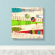 Arte e Canvas de Peixes Modernos do século médio, quadrados abstrato coloridos e formas luas em tons de laranja, ouro, marrom e lacre e verde limão. Uma adição perfeita ao estilo do seu meio século.