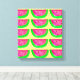 Inspirada pela pop art, esta ilustração de aquarela original é um design de fruta de melancia doce, quadril, rosa e verde num padrão sobre fundo amarelo-limão pastel. Esta design de fruta divertida e esquisita é brilhante e colorida e certamente traz um sorriso.