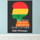 Esta poderosa design do Mês da História Negra mostra uma silhueta de uma mulher Negra com uma afro, simbolizando força e resiliência. As cores ousadas e a mensagem empoderadora, "Honrando o Passado, Capacitando o Futuro", fazem dela uma peça de declaração perfeita para celebrar a história e a cultura negras. Torne-o seu ao adicionar a sua mensagem.