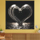 Meu amor por você é mais profundo que qualquer oceano. Um belo oceano com um coração d'água saindo dele em um fundo negro. Um cartão de namorados para ele.