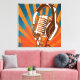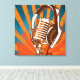 Fundo azul e laranja, estilo urbano e verde. Microfone estilo mais antigo com fones de ouvido por cima.