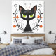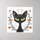 Black Cat Filigree / Quilling style design canvas wall art print featuring a Black Cat with large green eyes surrounded by flourishes and flowers.