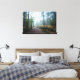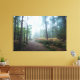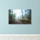 Esta foto mostra um caminho através de uma madeira escura de neblina em Norfolk, Reino Unido.