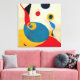 Este abstrato gráfico colorido tem formas vermelha, laranja, azul e preta.