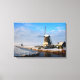 Canvas de paisagem impressão de um moinho de vento próximo a um pequeno rio à luz do sol de uma manhã fria de inverno numa paisagem rural holandesa com neve nos Países Baixos.