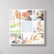 Crie um doce presente de casamento para sua mesa ou lar com esta tela de colagem de fotos com 8 fotos quadradas dispostas em torno de um quadrado cinza pastel com sua inicial, nomes e data de casamento.