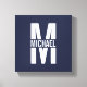 Impressão Em Tela Monograma e Nome Personalizados Azul-marinho