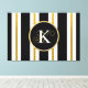 Impressão Em Tela Monograma Personalizado de Stripes Negras e Dourad