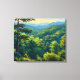 A canvas representation in the impressionist pictorial style of a deep montane forest with pine trees.