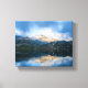 Canvas de arte impressão com uma bela foto da natureza. Montanhas no fundo com um lago calmo no primeiro plano. Fotografia serena e relaxante.