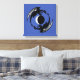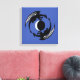 Dois dragões negros voadores circulam uma lua crescente nesta design de fantasia de Richard H. Fay.