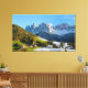 Canvas de paisagem impressão de uma imagem de uma loja de fotos composta por duas fotos tiradas com dois dias de intervalo, mostrando a mudança de estação do outono para o inverno. A aldeia é Rua. Magdalena (Papais noeis Maddalena) no Vale do Funes, no Tirol do Sul, Itália, com as montanhas Odle Dolomites ao fundo.