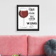 Um sinal estranho é adorado por qualquer bebedor de vinho divertido. Um copo de vinho é visto com o ditado, "Você pode ter vinho demais? WINO (Por que não) você não pode!" A borda pode ser alterada apenas selecionando outra cor ou branco. Design original de Christie Black of Creations do Coração.