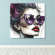 Impressão Em Tela Mulher bonito em óculos escuros e batom roxo