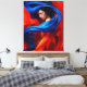 Impressão Em Tela Mulher com Véu Azul Cobalto em Laranja