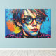 Otis Porritt's digital artwork presents an arresting close-up portrait, bursting with an electrifying palette of hot pink, vivid yellow, and intense blue. The subject's face is rendered with bold, contrasting color blocks and a dynamic, pointillist-like texture, creating a modern pop art aesthetic. Piercing blue eyes hold the viewer's gaze, while a stark black streak descends from one eye, adding a poignant touch. The vibrant, almost chaotic energy of the multi-colored hair and dotted background amplifies the work's striking visual impact.