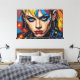 This vibrant digital artwork presents a striking portrait of a figure with a punk aesthetic, featuring a bold mohawk and round sunglasses. The face is rendered in an explosion of vivid, textured hues—blues, yellows, and pinks—contrasting sharply with the deep black outlines. A dynamic hot pink background, rich with impasto-like strokes, complements the subject's intense gaze. Halftone dots add a graphic pop art element, creating a powerful visual statement.