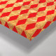 Wall art mostra a ilustração original da Vintage do Mad Hatter da Alice de Lewis Carroll no País das Maravilhas com a citação adicional "Eu não acho...disse Alice. Então você não deveria falar. Disse o Ódio". Padrão de harlequin vermelho desfocado fundo impressão