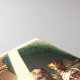 arte vintage com pintura de cena da natividade com madonna e criança, joseph, três sábios com presentes, e multidões de pessoas do lado de fora, com um lindo raio de luz tocando no jesus bebê que levantou a mão em uma saudação.